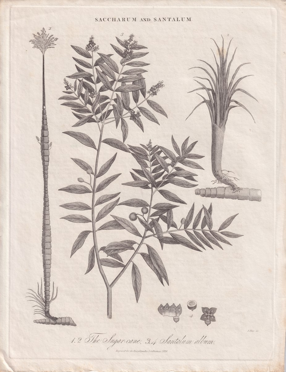 Antique Engraving Print, Saccharum and Santalum, 1826, credit Antiche Curiosità©