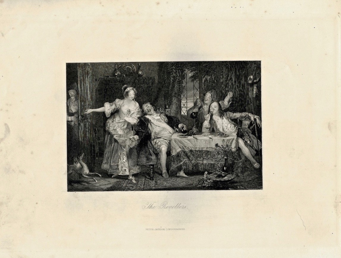 Rare Antique Engraving Print, The Revellers, 1830 ca.