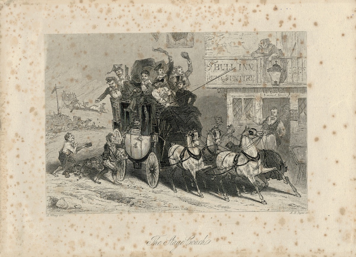 Rare Antique Engraving Print, The Stage Coach, 1820 ca., credit Antiche Curiosità©