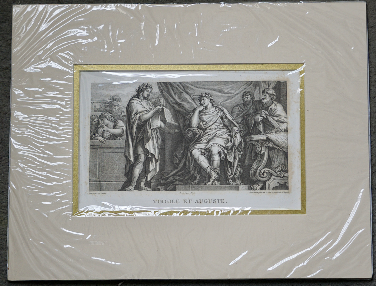 Rare Antique Engraving Print, Virgile et Auguste, 1750 ca. credit Antiche Curiosità©