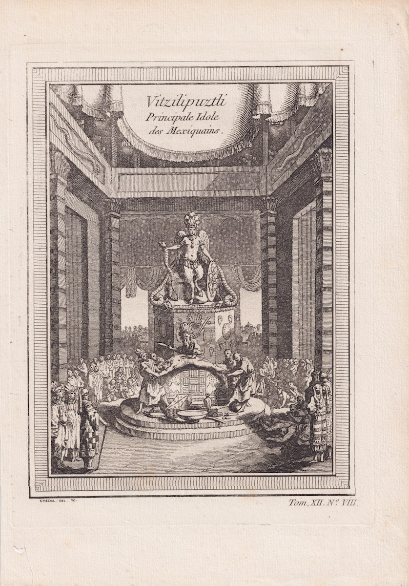 Rare Antique Engraving Print, Vitzilipuztli, 1750, credit Antiche Curiosità©