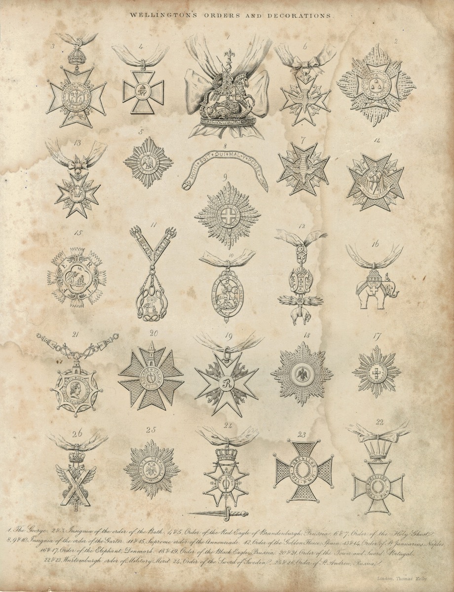Rare Antique Engraving Print, Wellington’s Order and Decoration, 1810 ca., credit Antiche Curiosità©