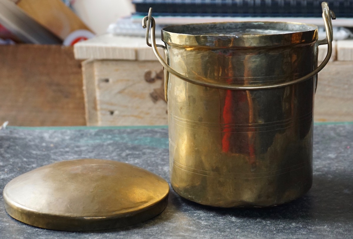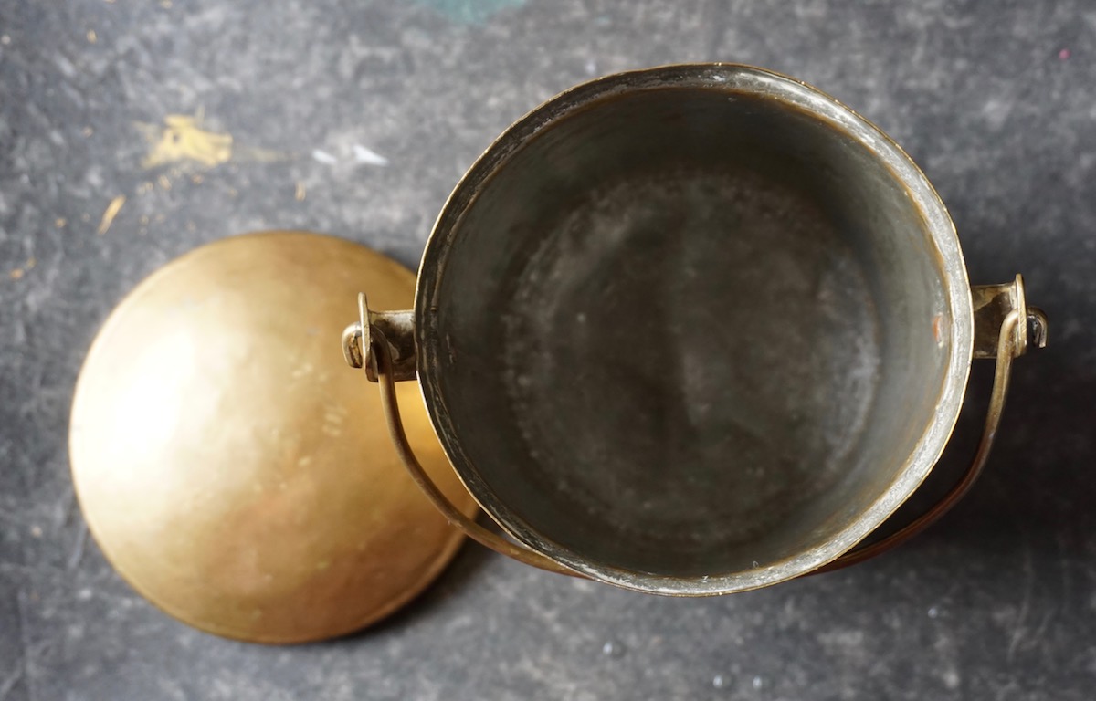 Antique Handmade Indian brass ghee storage pot, credit Antiche Curiosità©