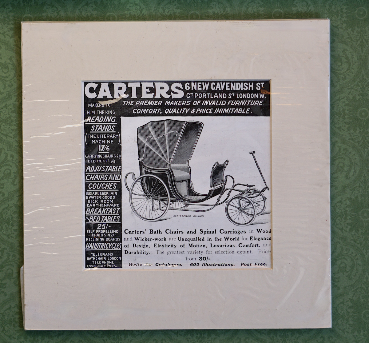 Rare Original Vintage Print, Carter’s Bath Chairs and Spinal Carriages, 1900