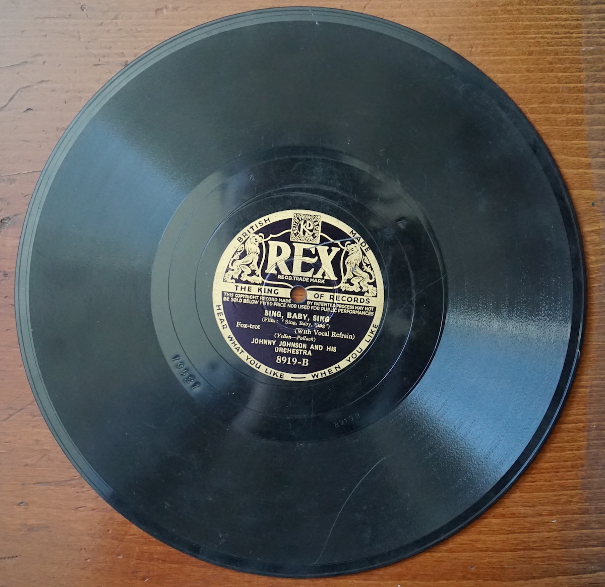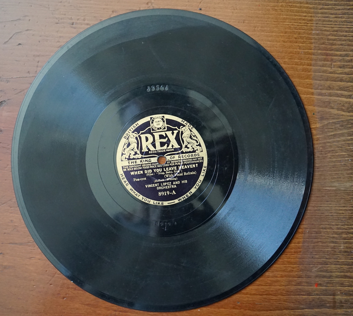 Rare Sing, baby, sing; When did you leave heaven? Vincent Lopez and his orchestra, 1936, format 10″, 8919 A.