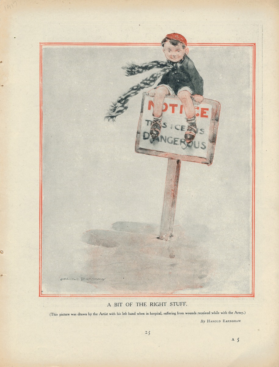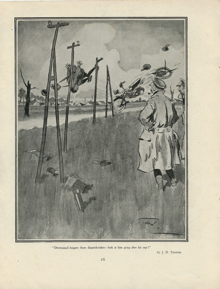 Rare Vintage Print, A Bit of the Right Stuff, by Harold Earnshaw; “Determined beggars those dispatch-riders-look at him going after his cap!” by J. H. Thorpe, 1908, 27,5 x 21,1 cm. Printed on both sides.