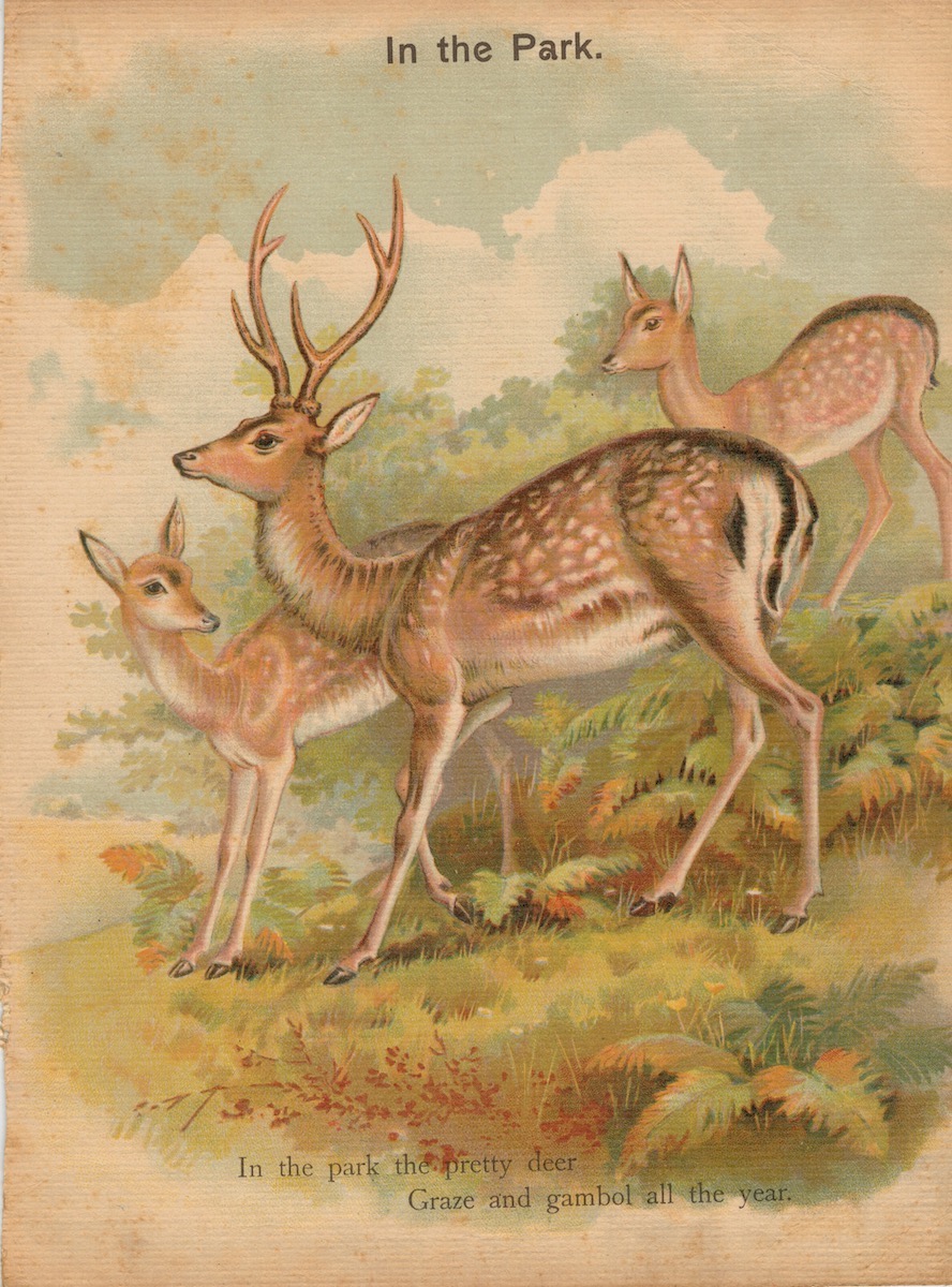 Rare Vintage Print, In the Park; Funny Frolics, 1890 ca. 27,3 x 21,3 cm. Printed on both sides.