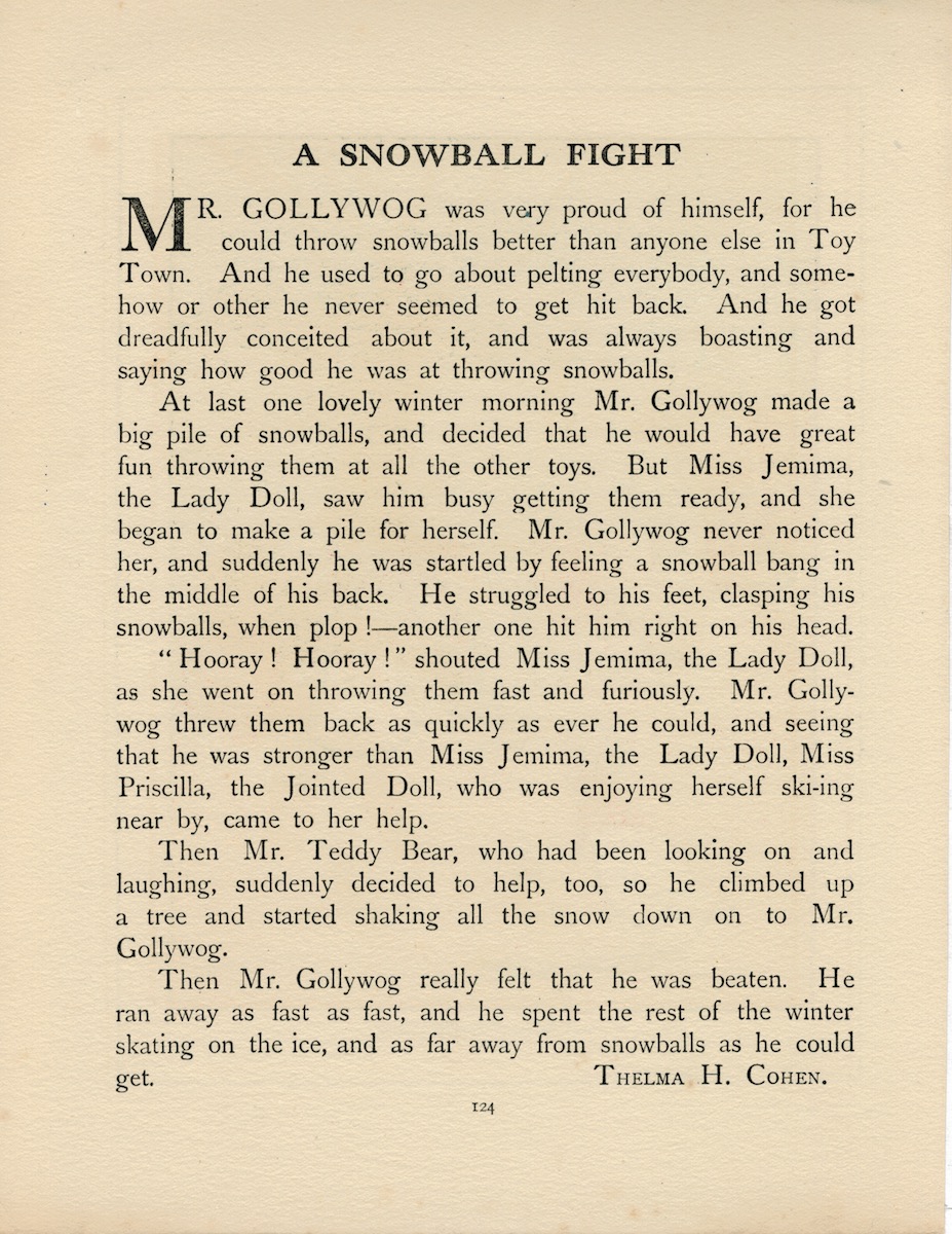 Vintage Print, Mrs. Duck Goes Calling, Ernest Aris, 1919, cm. 27 x 21. Reverse Side: “A Snowball Fight”.