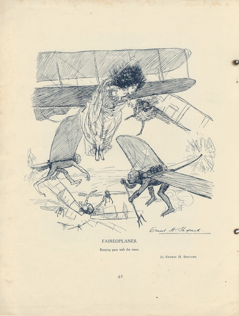 Vintage Print, The Descent of Man, 1908, by G. E. Studdy; Faireoplanes by Ernest H. Shepard, 27,7 x 21,2 cm. printed on both sides.