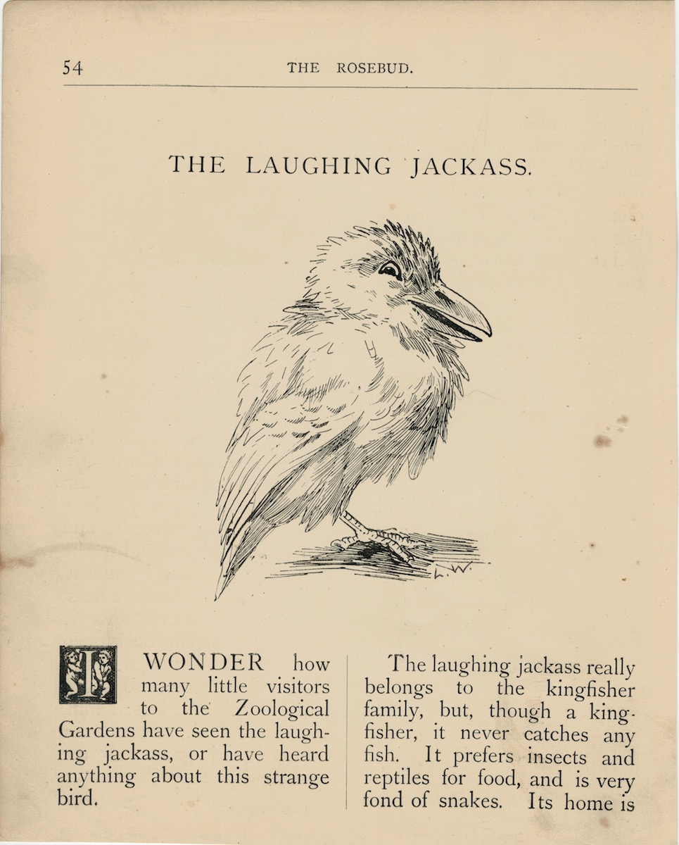 Rare Vintage Print, The Laughing Jackass, 1895, 22,2 x 17,9 cm. Printed on both sides. By Louis Wain.