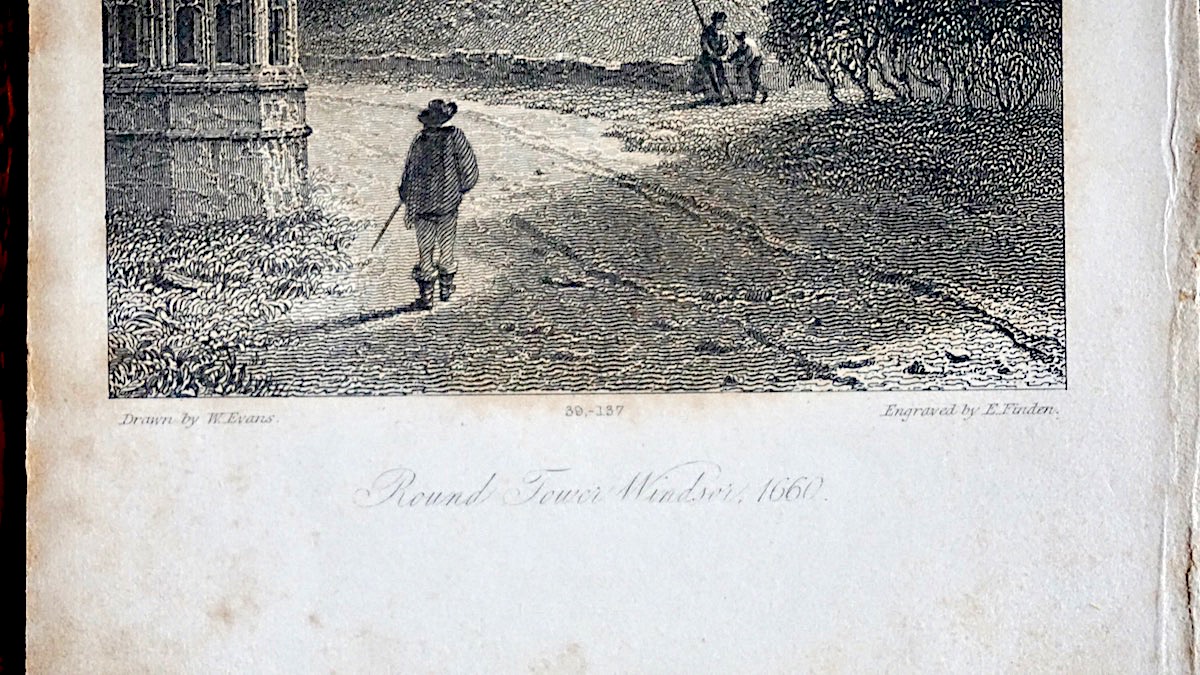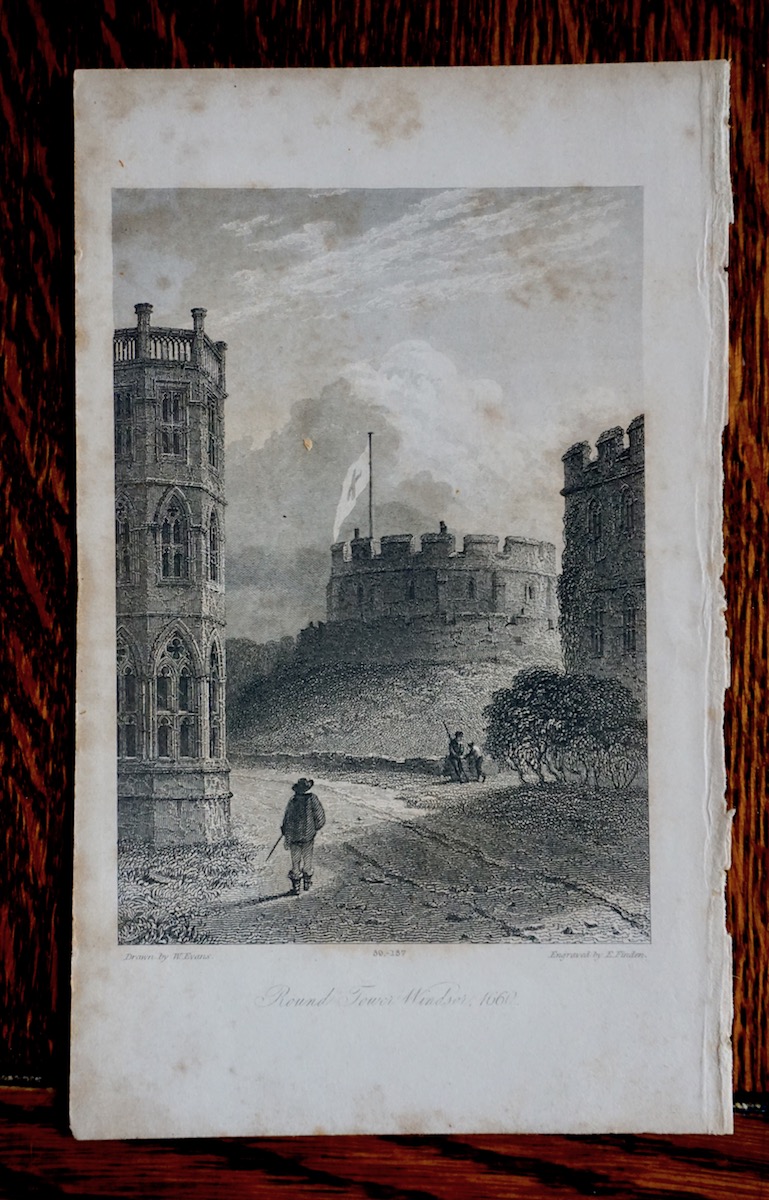 Antique Engraving Print Round Tower Windsor 1660, Drawn by W. Evans, engraved by E. Finden, cm. 16 x 10. Published September 1833.