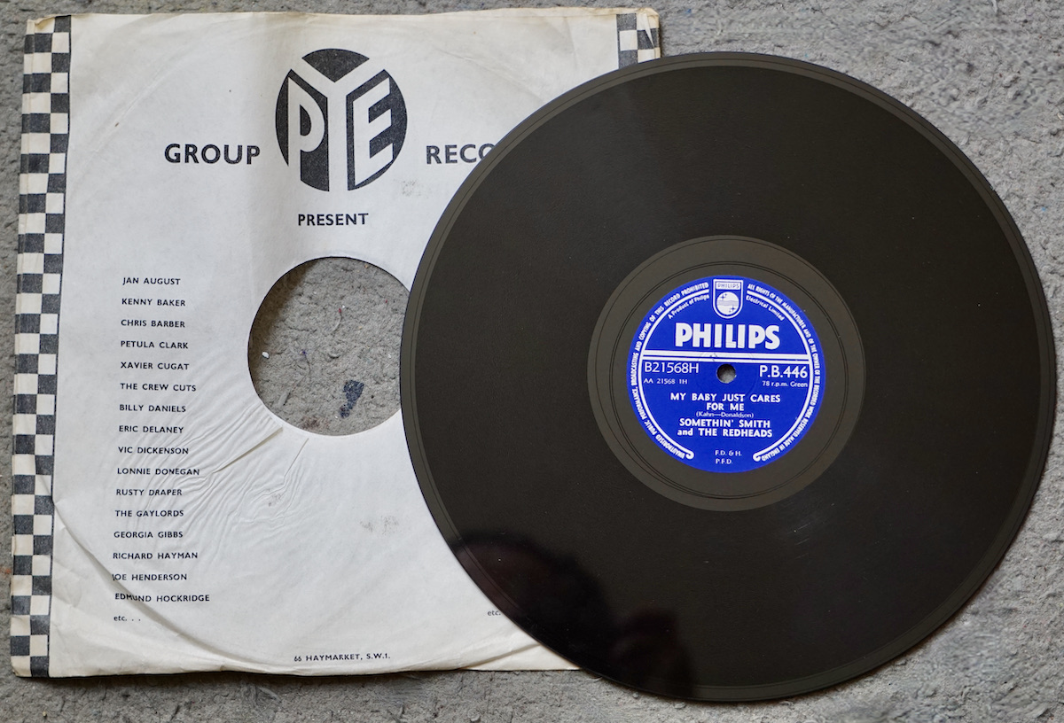 Somethin’ Smith And The Redheads, My Baby Just Cares For Me; It’s A Sin To Tell A Lie, 1955.