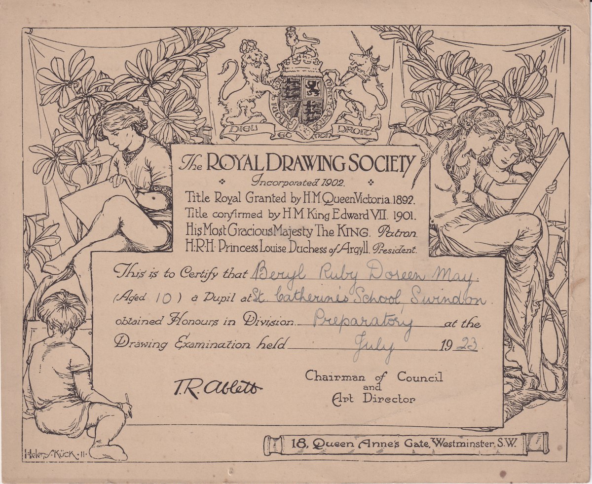 The Royal Drawing Society, Certificate, 1924, 19.3 x 16 cm.