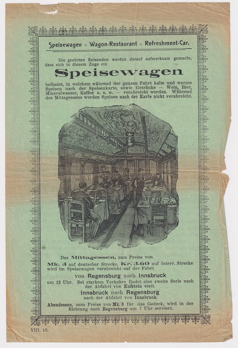 Very Rare Print, Speisewagen Wagon Restaurant, 1915, credit Antiche Curiosità©