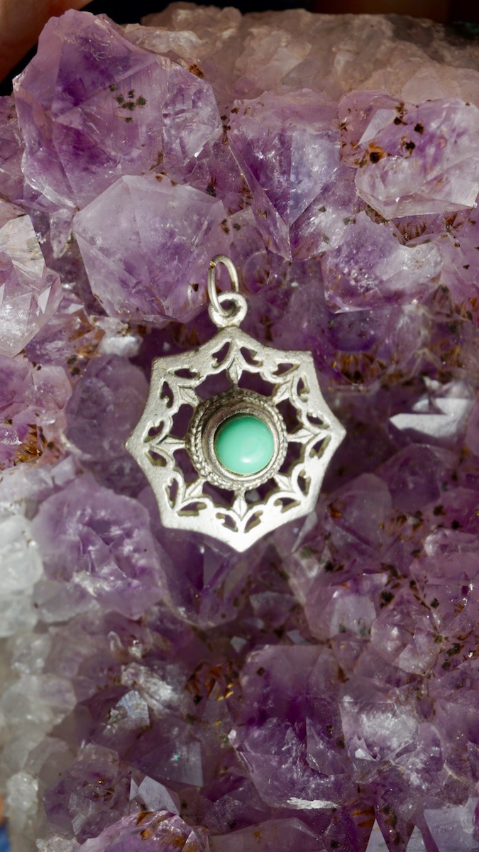 Vintage 925 silver pendant with natural turquoise, credit Antiche Curiosità©