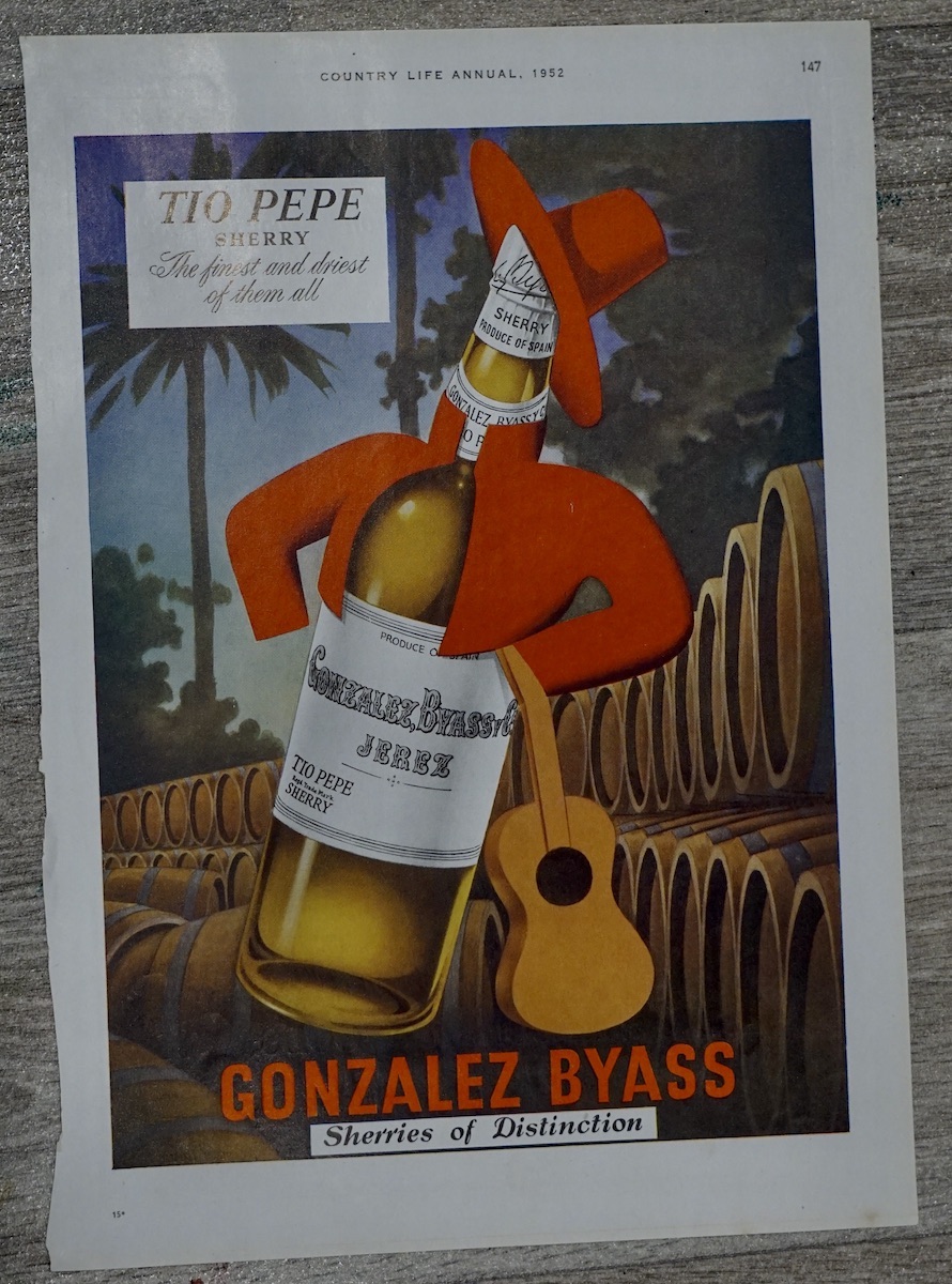 Vintage Advertisement Gonzalez Byass, 1952, 33.5 x 23.6 cm.