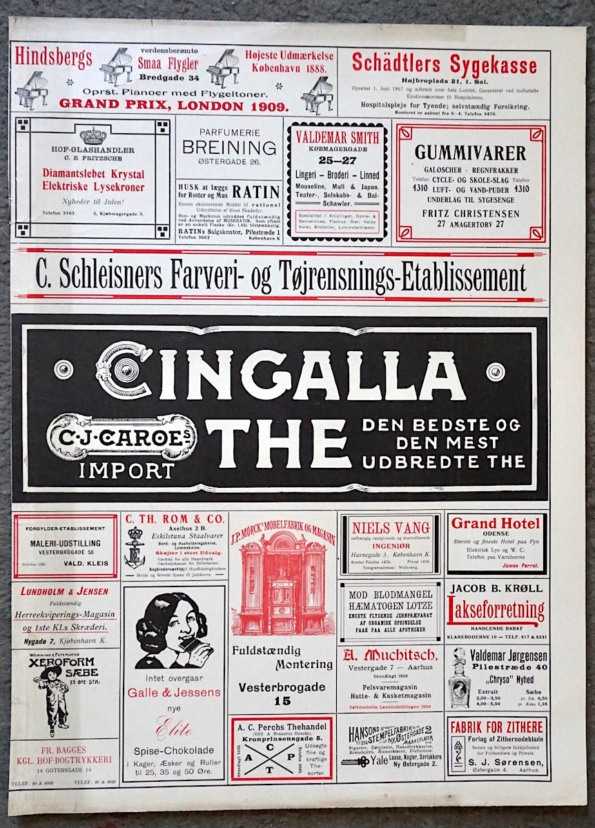 Vintage Advertising Print, Cingalla The, Gummivarer… 1911, 31,3 x 41,8 cm. Printed ob both sides.