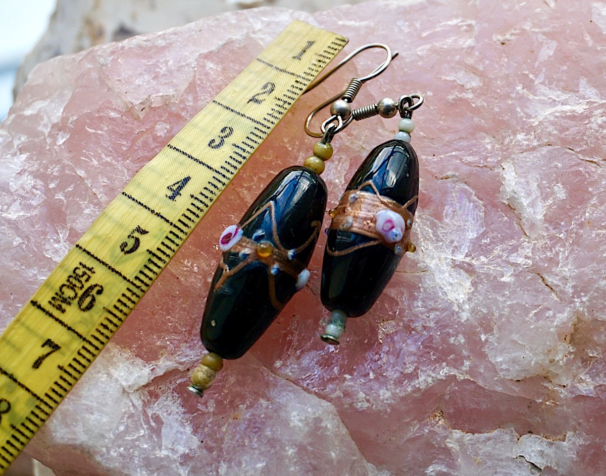 Vintage Black Murano Earrings, 6,5 cm.