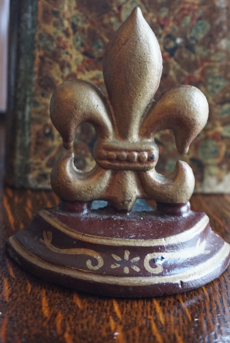 Vintage cast iron fleur-de- lys door stop, 10 x 11 cm. Hand painted.