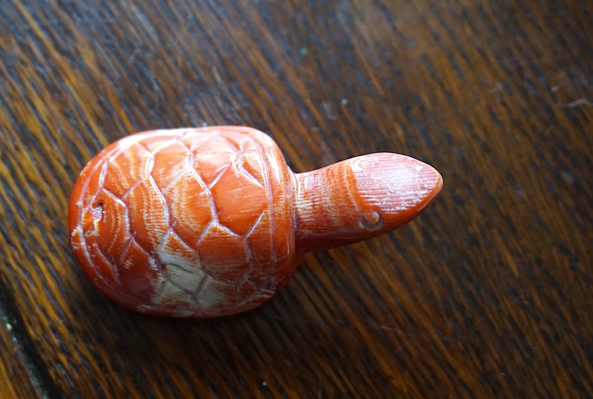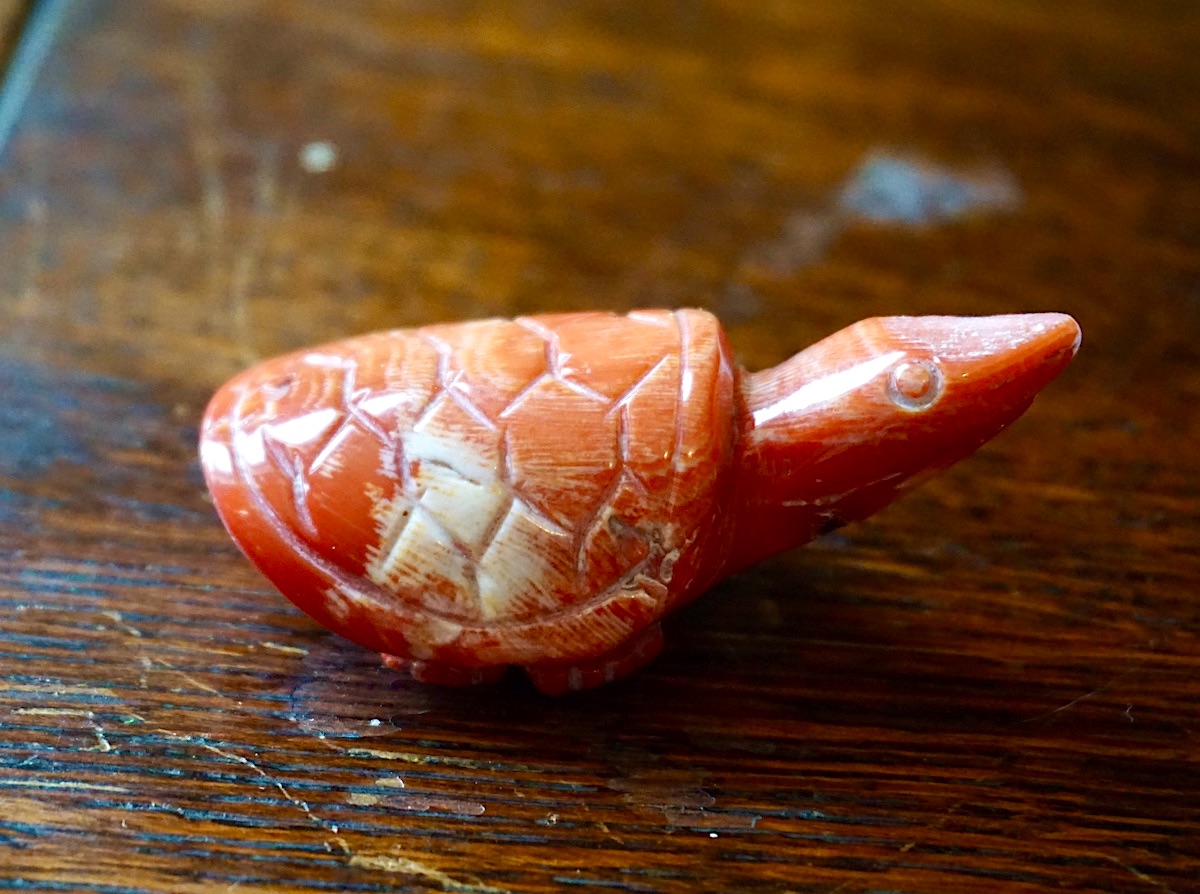 Vintage Chinese Hand Carved Dark Red Coral Turtle Figurine, credit Antiche Curiosità©