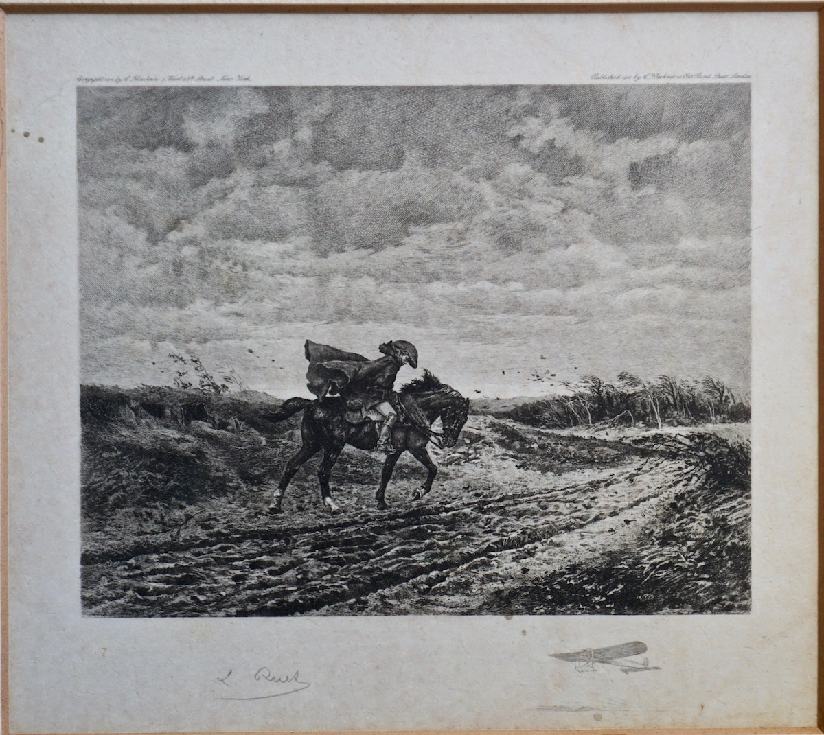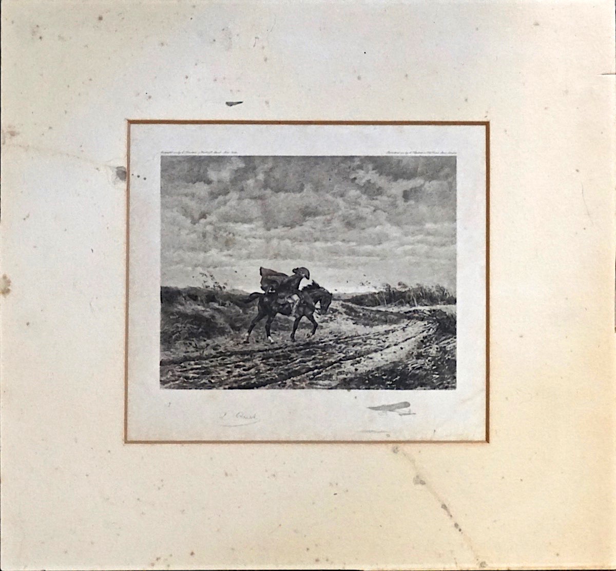 Vintage Engraving Print, Horse and Rider, 1911, cm. 39 x 36, copyright by Klachner.