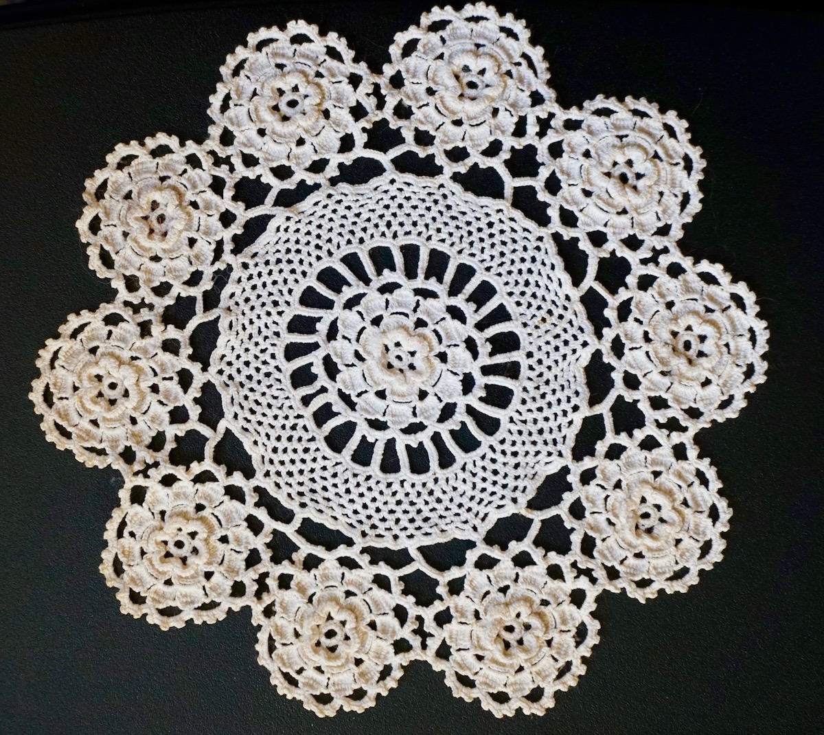 Vintage Handmade Crochet Doily, 21 x 21 cm.