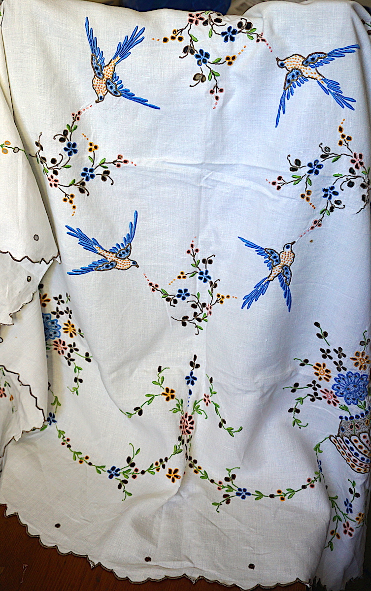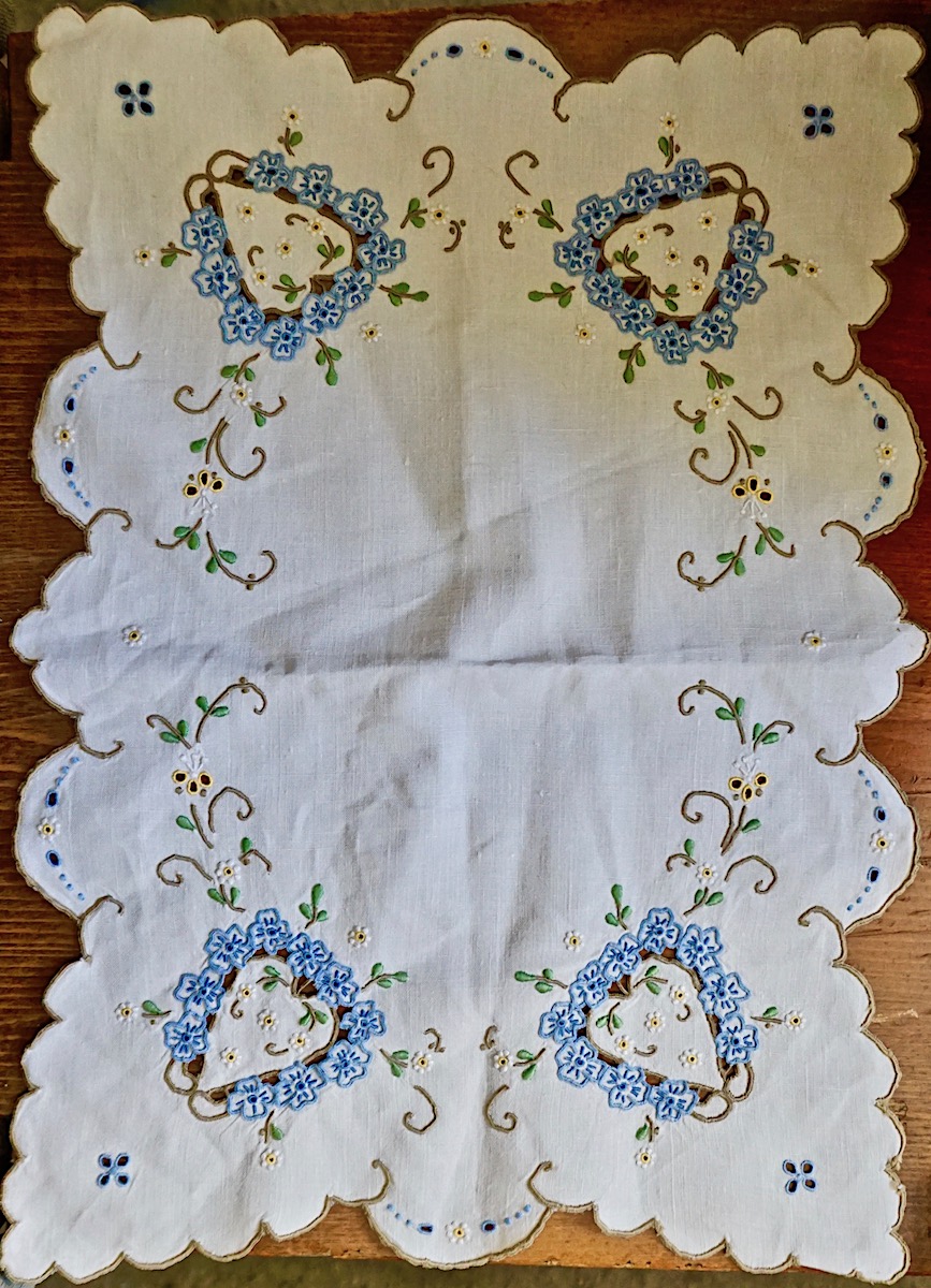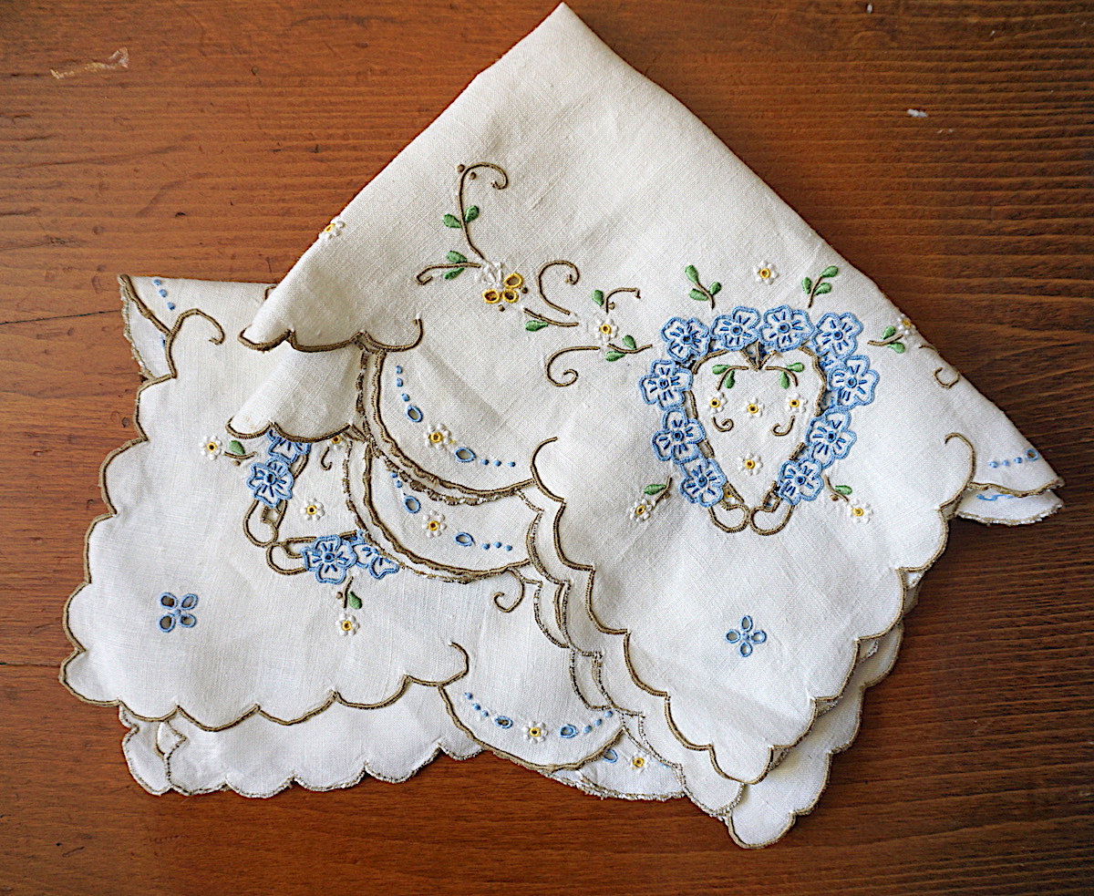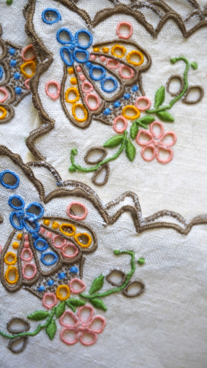 Vintage Handwork set carving embroidery, linen tablecloth, placemats and napkins