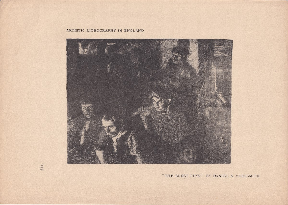 Vintage Lithography, The Burst Pipe, 1920 ca. 29 x 20.7 cm.