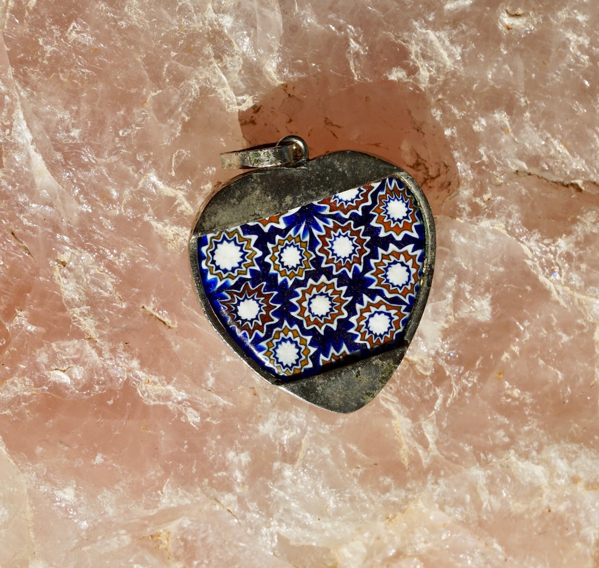 Vintage Love Heart Ceramic and metal pendant, credit Antiche Curiosità©