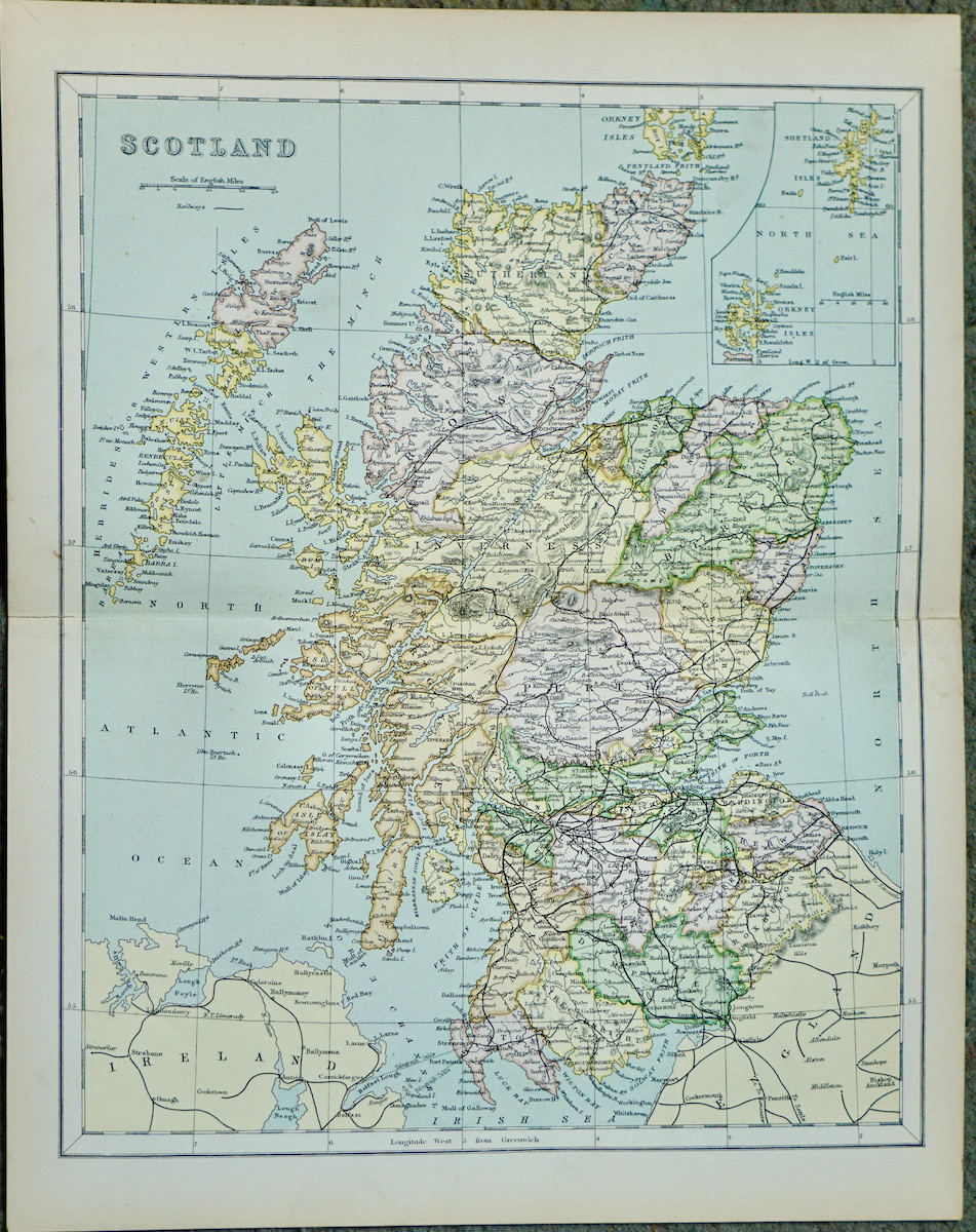 Vintage Map, Scotland, 1901, 31.3 x 32.5 cm.