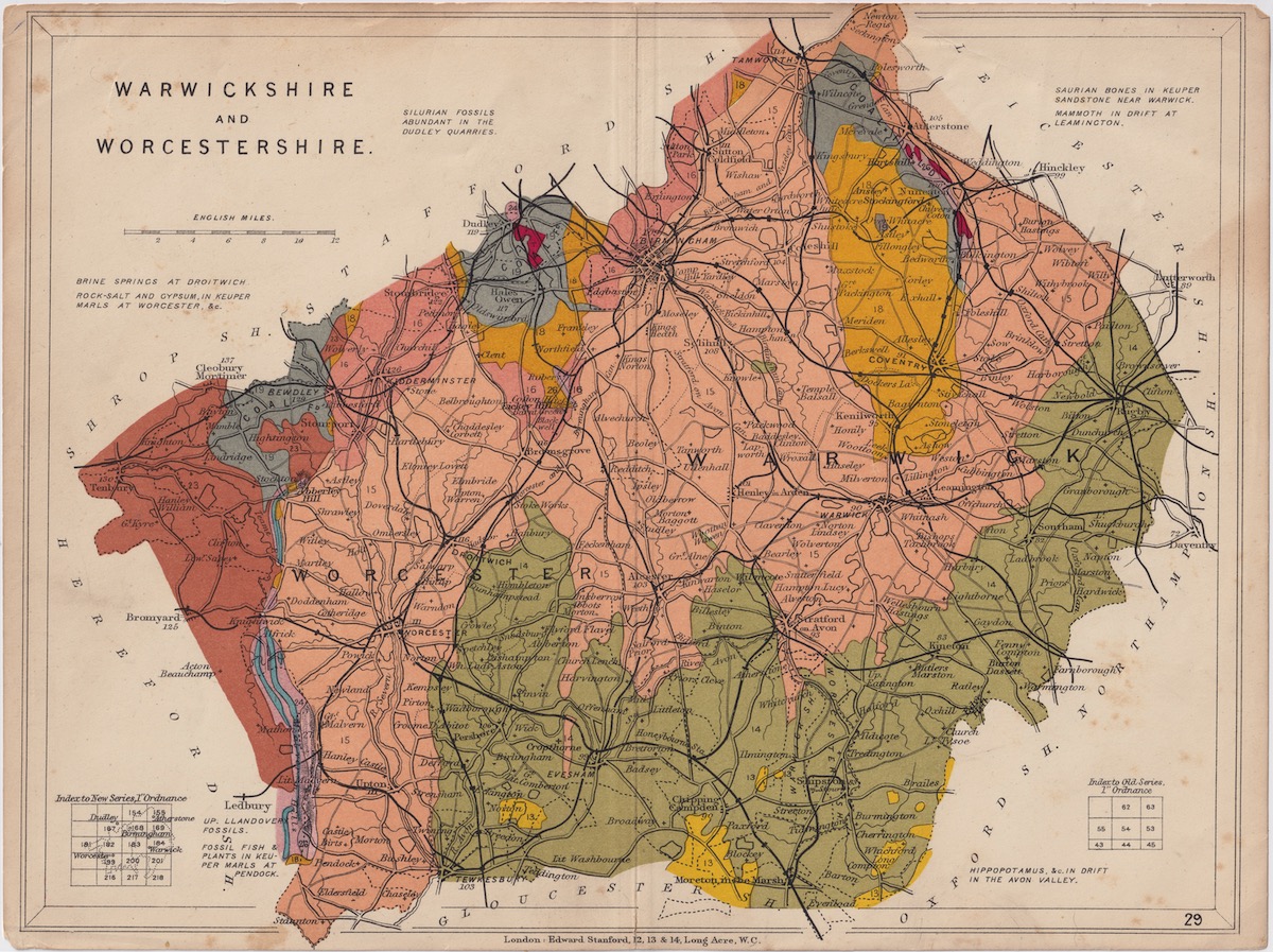Vintage Map, Warwickshire and Worcestershire, 1889, credit Antiche Curiosità©