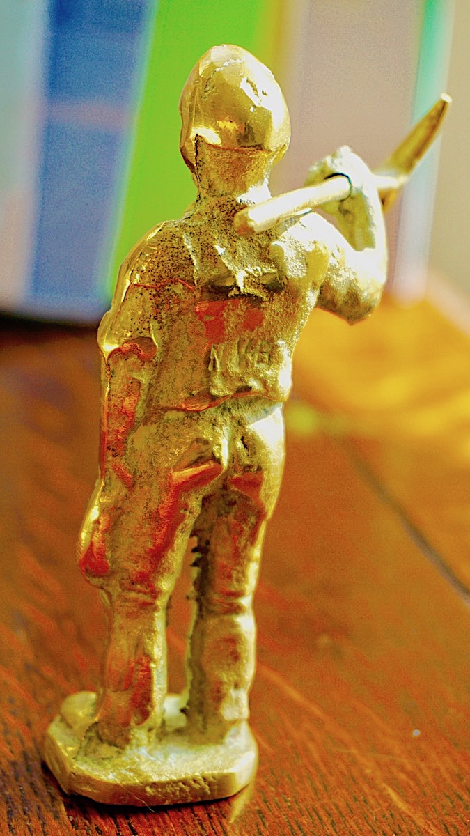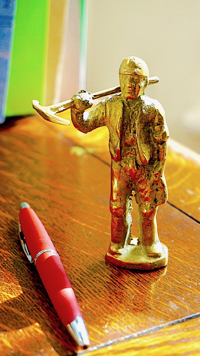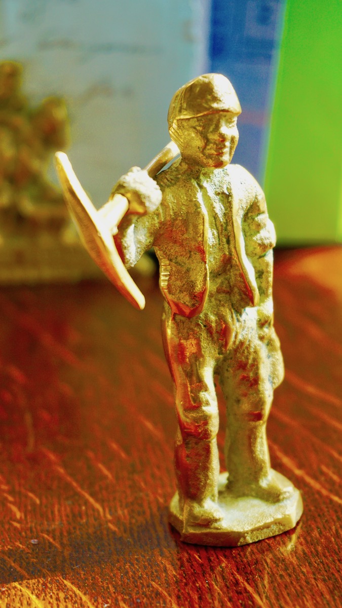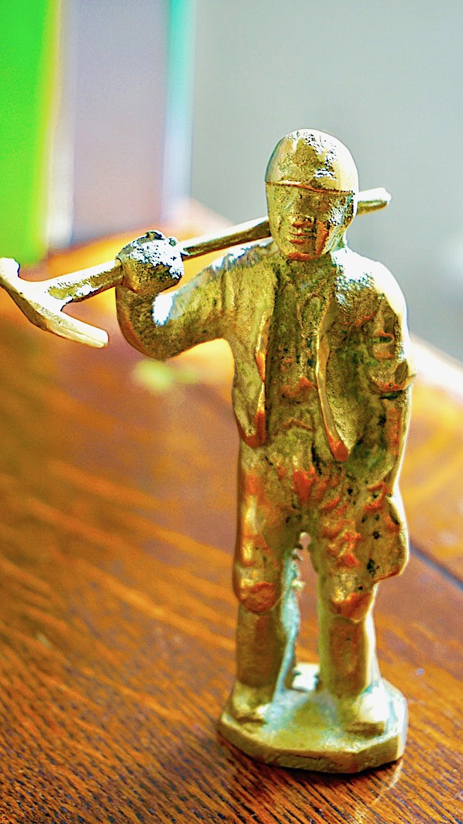 Vintage NVB British Made Brass, miner with a pickaxe, credit Antiche Curiosità©