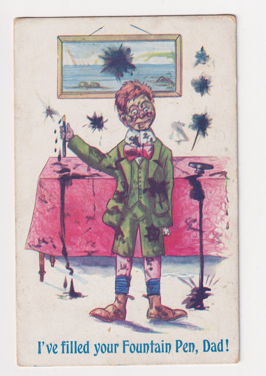 Vintage Postcard, I’ve filled your Fountain Pen, dad! 1908, credit Antiche Curiosità©