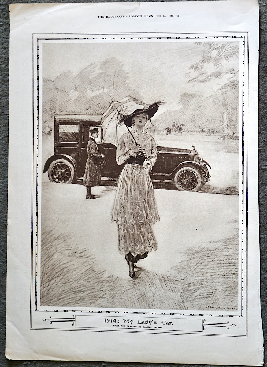 Vintage Print, “1914: My Lady’s Car”, 1915, 40.3 x 28.5 cm. Printed on both sides.