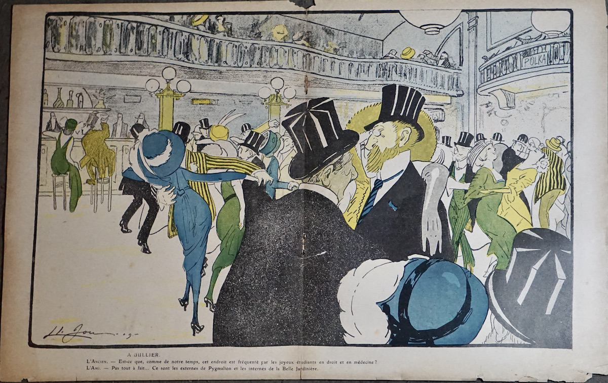 Vintage Print, A Bullier, 1901, Printed on both sides, 49 x 31.8 cm. From l’Assiette au beurre.