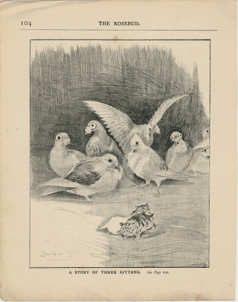 Vintage Print, A Story of Three Kittens, 1890, by Louis Wain, 23,1 x 18,3 cm. Printed on both sides.