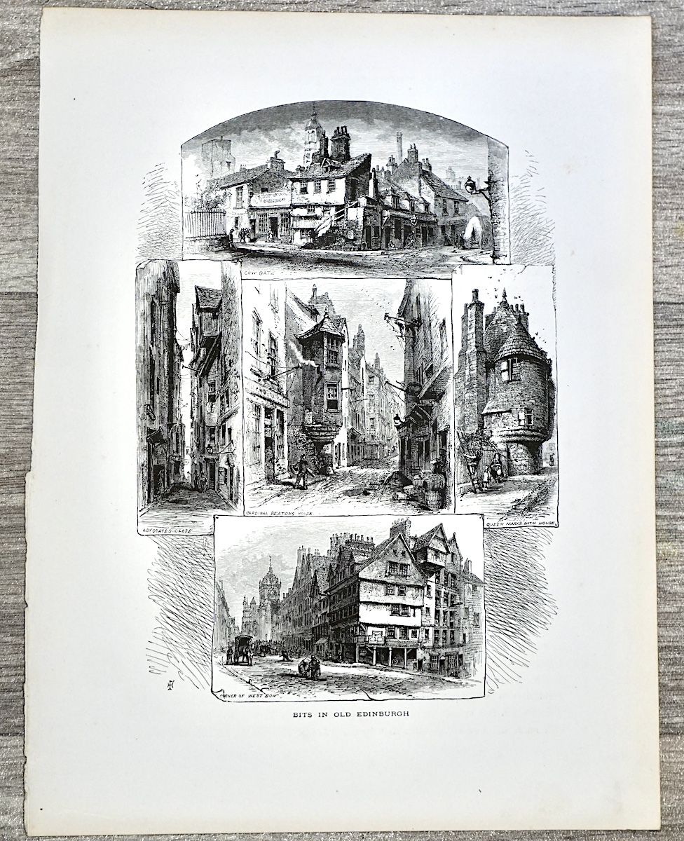 Vintage Print, bits on old Edinburgh, 1880, 31.7 x 24 cm.