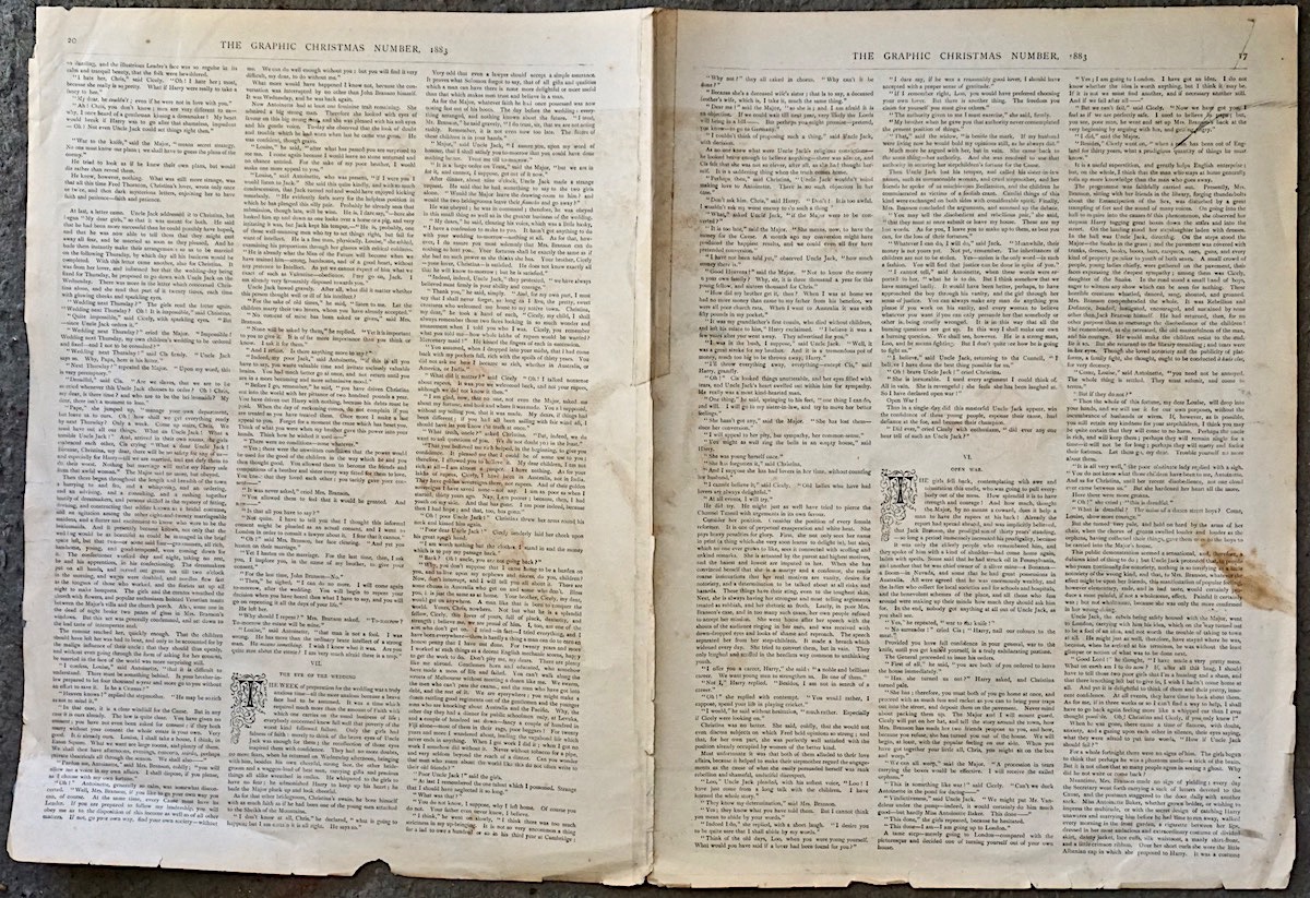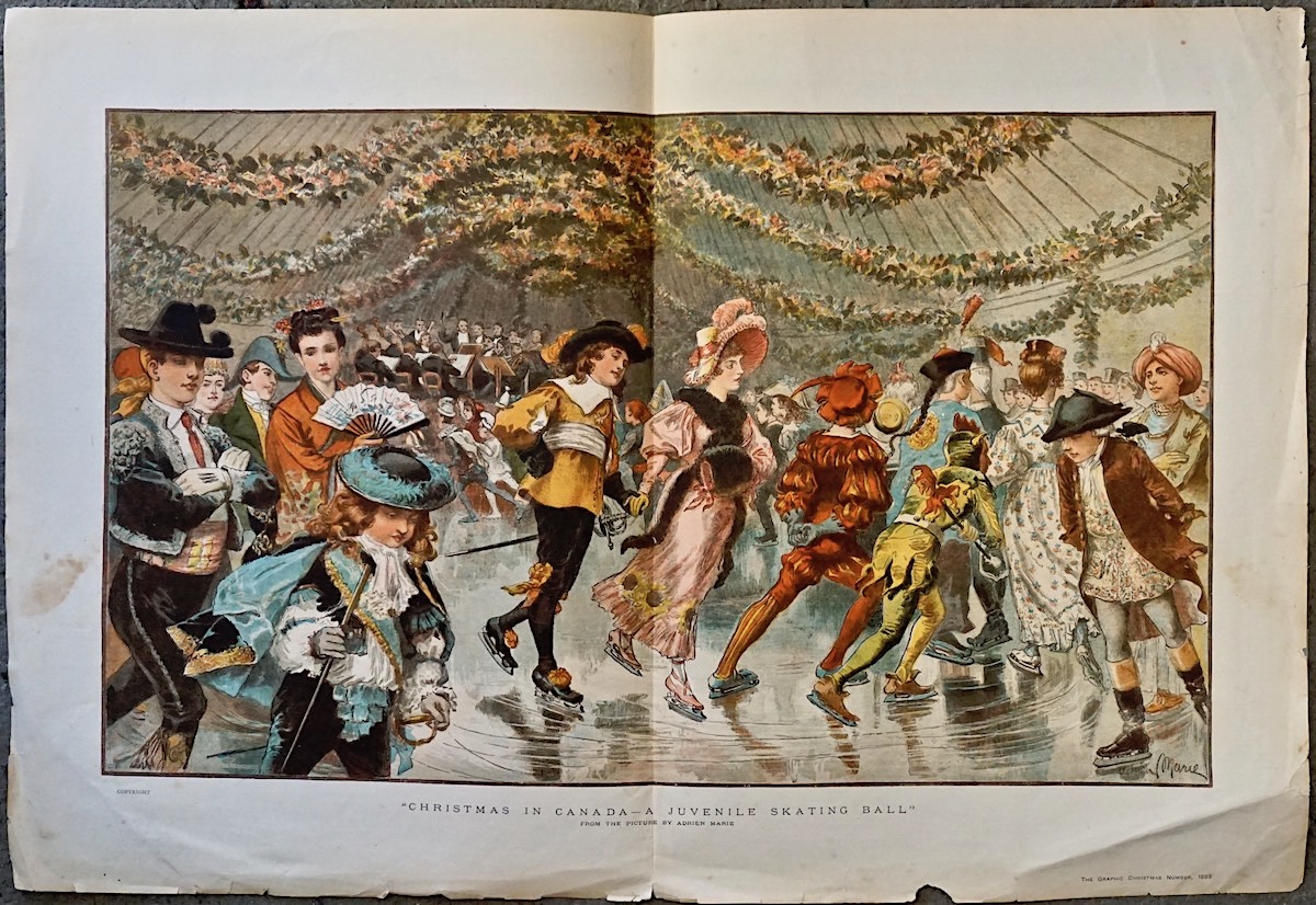Vintage Print, Christmas in Canada-A Juvenile Skating Ball, 1883, cm. 59 x 41, from the picture by Adrien Marie in the Graphic Christmas, number 1883. Foldable.