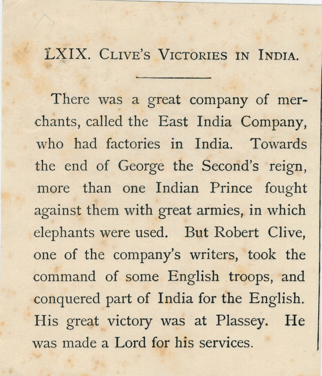 Vintage Print, Clive’s Victories in India, 1890, 10,8 x 12,5 cm.