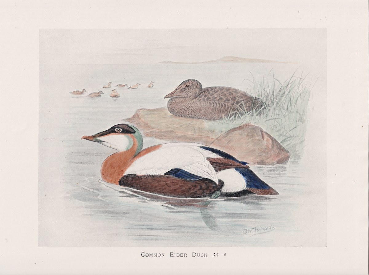 Vintage Print, Common Eider Duck, 1900, credit Antiche Curiosità©