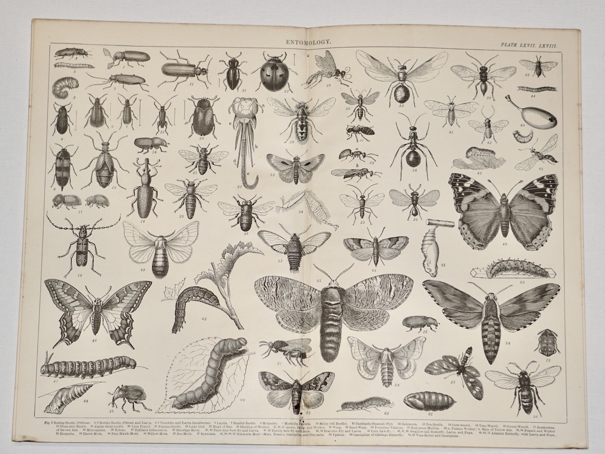 Vintage Print, Entomology, 1870 ca., 35 x 25 cm.