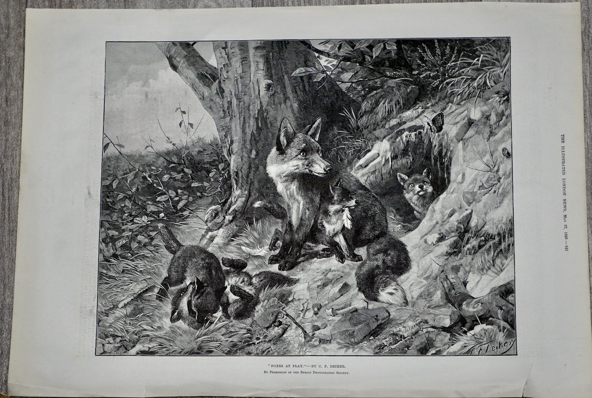 Vintage Print, Foxes at play, 1893, 40.5 x 29.2 cm.