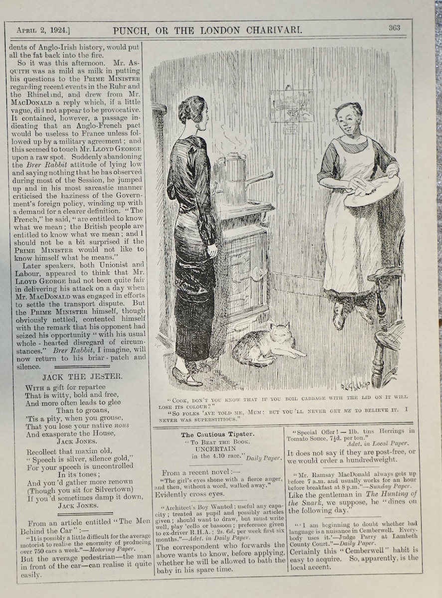 Vintage Print from Punch, 1924, 20.4 x 27.3 cm.