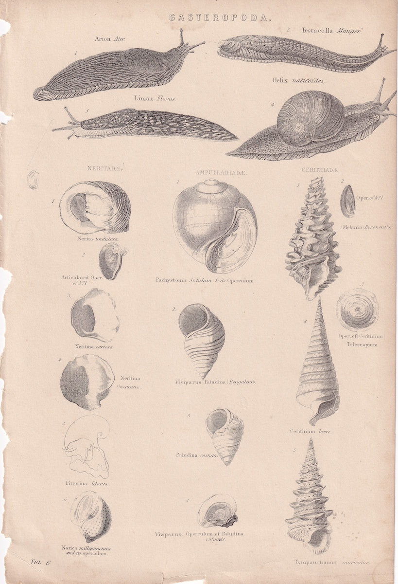 Vintage Print, Gasteropoda, 1880, 16.5 x 24.5 cm.