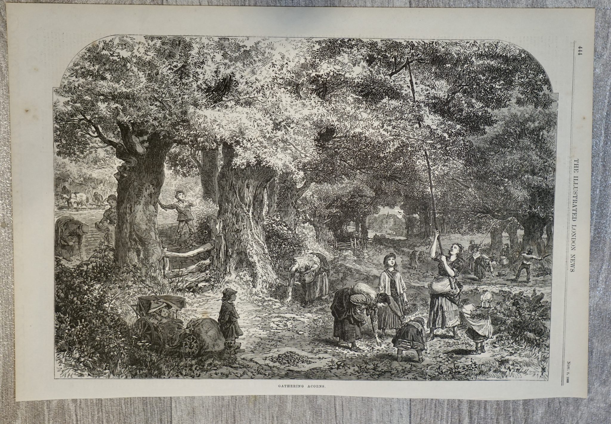 Vintage Print, Gathering Acorns, 1868, 40 x 27 cm.