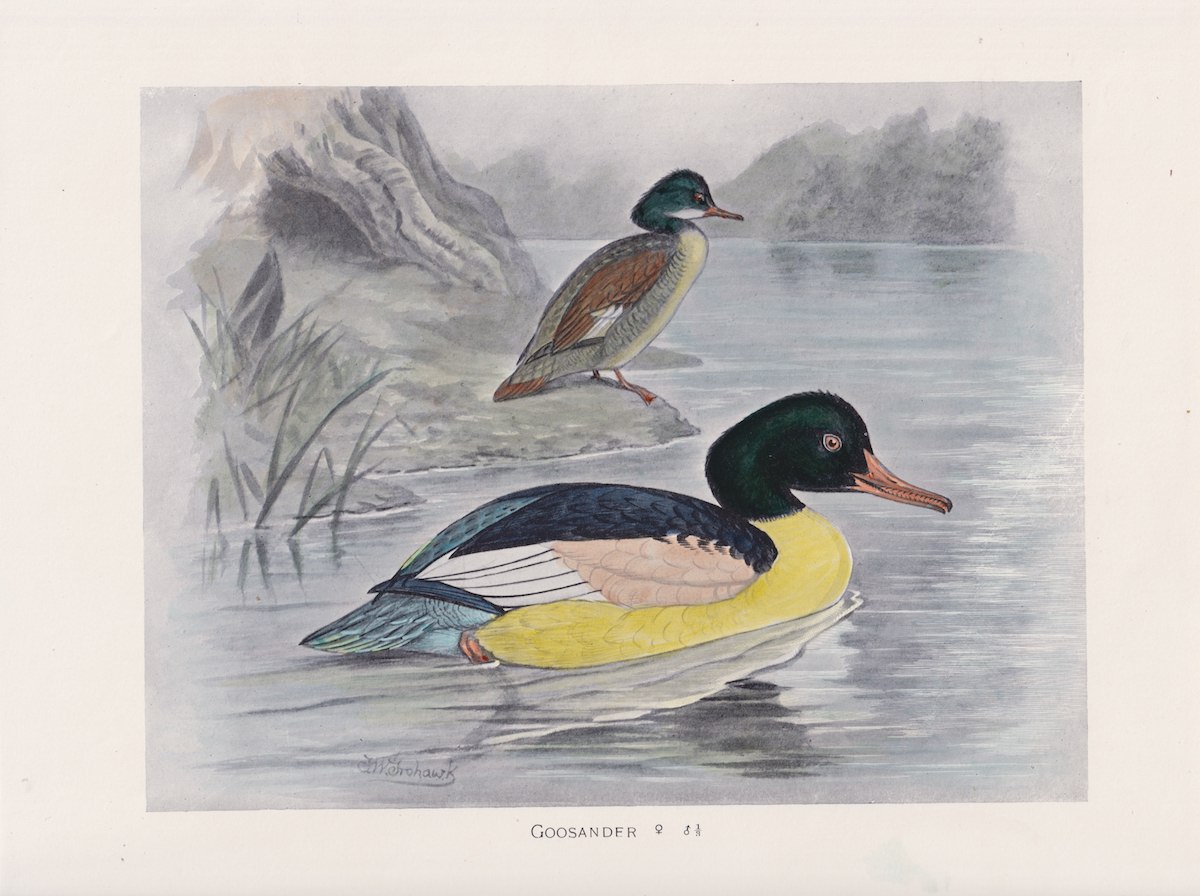Vintage Print, Goosander, 1900, 29 x 22,5 cm.