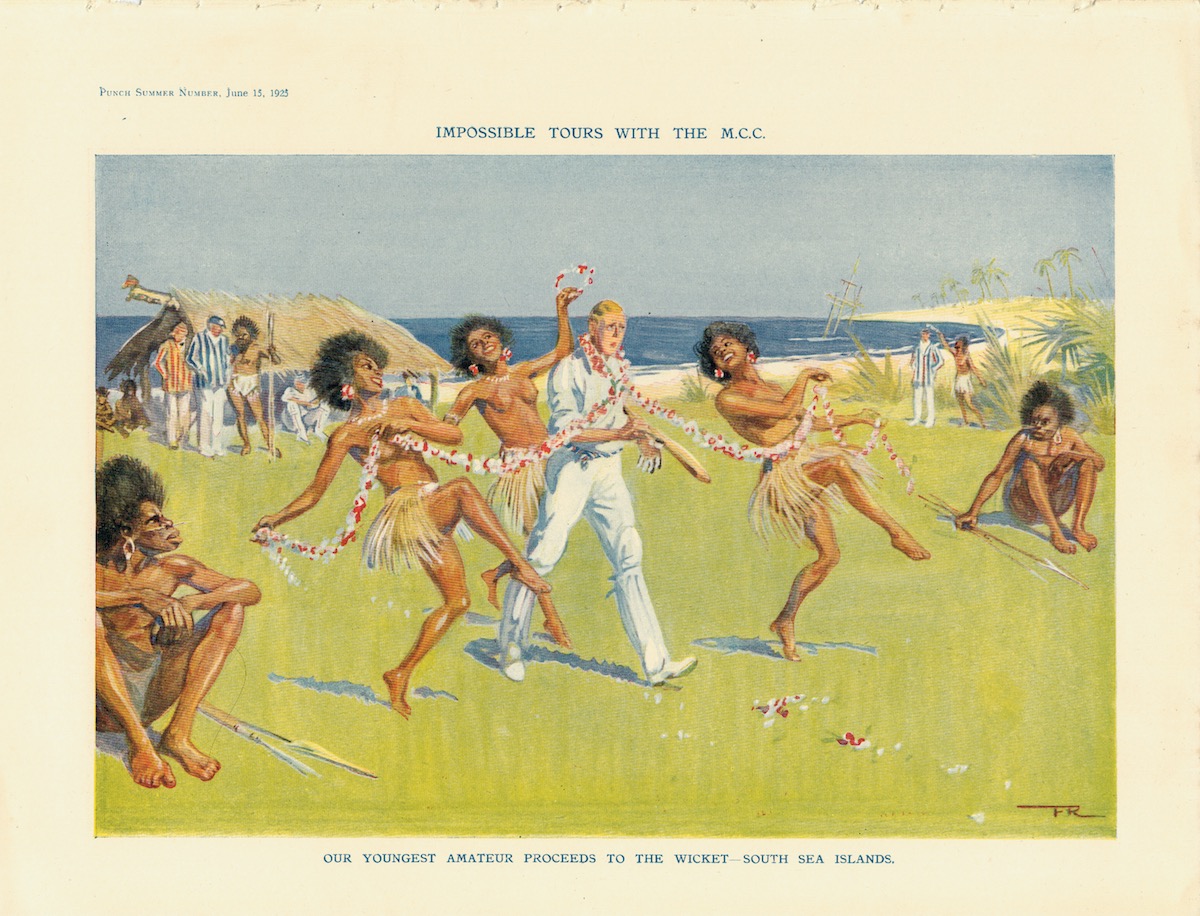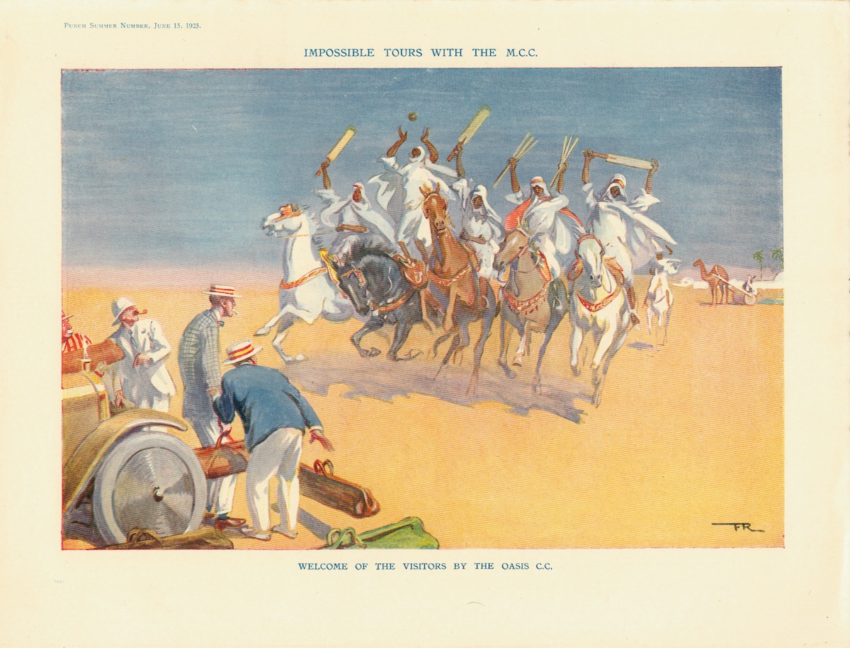 Vintage Print, Impossible Tours with The MCC, 1925, Our Youngest Amateur Proceeds to the Wicket-South Sea Island; Welcome of the Visitors by the Oasis C.C., 1925, 27 x 20,7 cm. Printed on both sides.