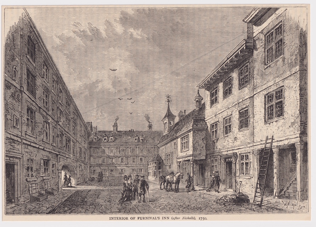 Vintage Print, Interior of Furnival’s Inn, 1870, credit Antiche Curiosità©