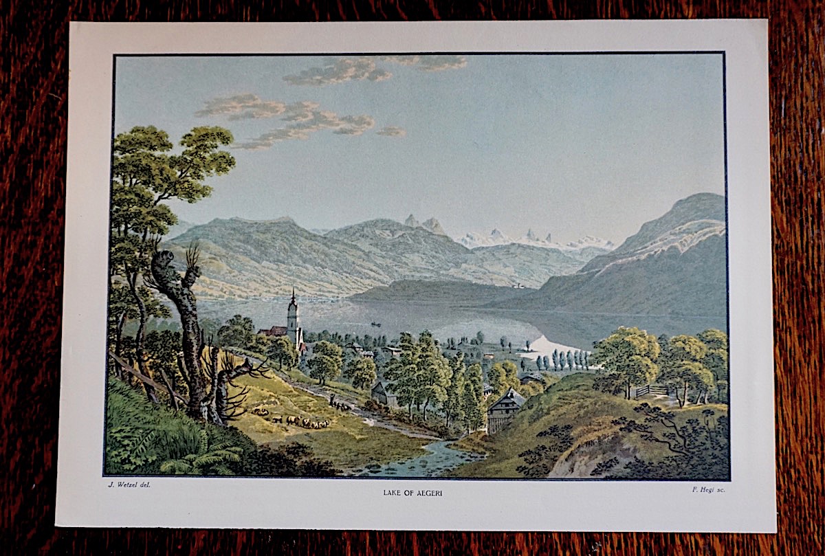 Vintage Print “Lake of Aegeri”, 1890-1910 ca. Perfect condition. cm. 24 x 17.