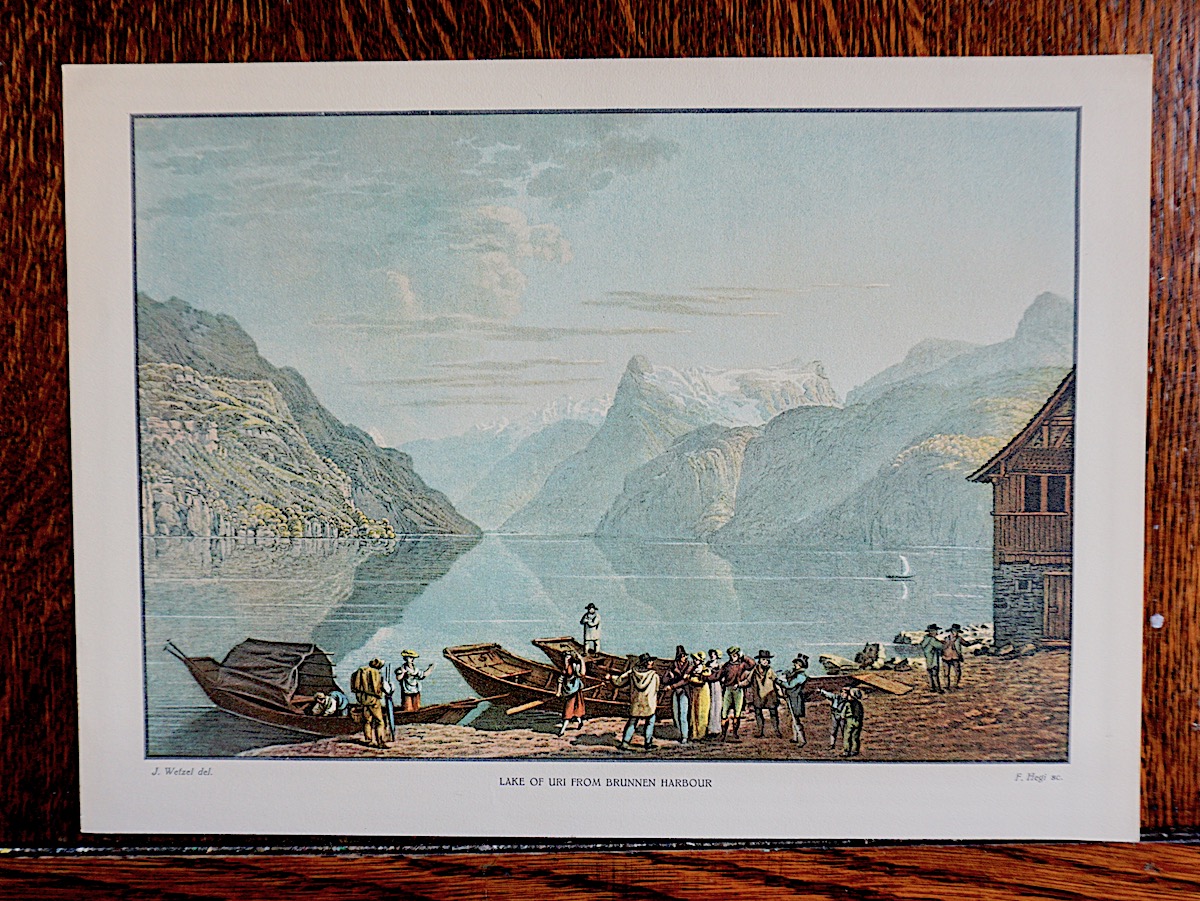 Vintage Print, Lake of Uri from Brunnen Harbour, 1890-1910, perfect condition, cm. 24 x 17.